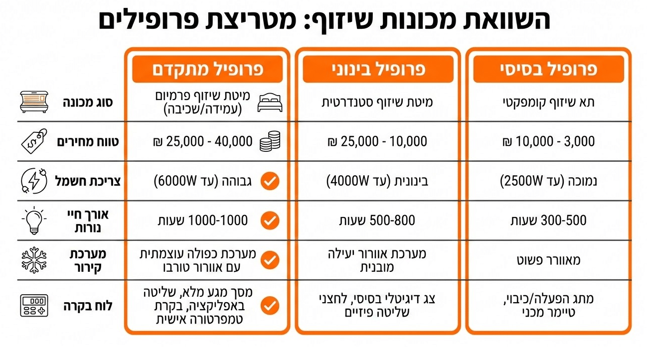 טבלת השוואה מומלצת למותגי מכונות שיזוף